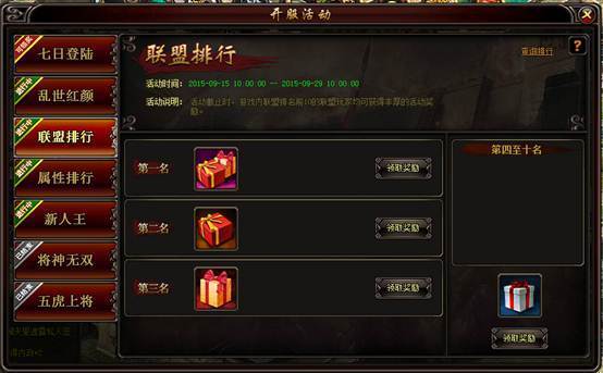 2) 活动截止时,联盟排行前10名的联盟玩家均可获得丰厚奖励。