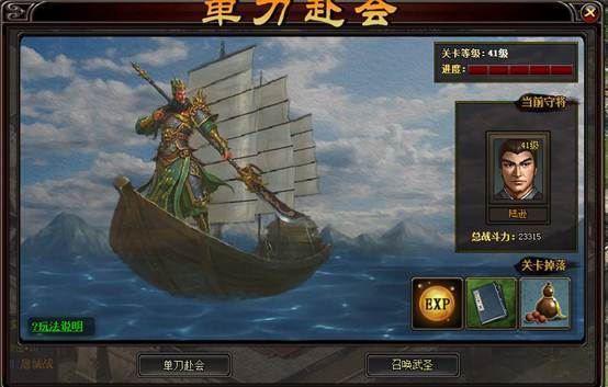 2.“单刀赴会”,点击后,君主单独进行斗将战。