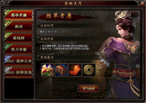 l 如上图“活动大厅”,点击图标后,即可进入活动大厅界面,如下图: