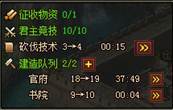l 下方是一些常用功能的提示和快捷操作,主要包括征收物资、将领历练、君主经济、科技研究、建造队列等五项内容;
