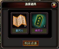 点击对应图标或者数字,会弹出与该项资源生产有关的一些道具,如点击第六项人口,会弹出使用典民令等增加人口的道具的快捷窗,如图: