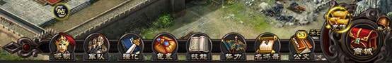 l 如上图所示,常规功能包括:将领、军队、强化、包裹、技能、联盟名将录、公文、充值和商城共十个系统的内容。