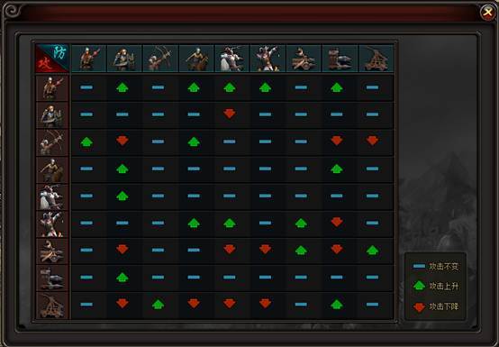 不同士兵之间相互克制,具体相克关系详见下图