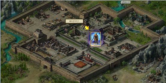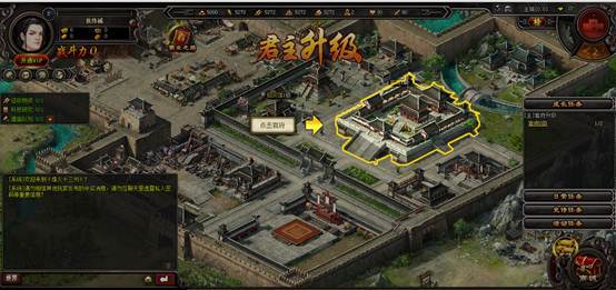 随着玩家等级的提升,游戏将会从战役战斗转到城池建设中,城池的操作相对比较简单,只需要将鼠标左键移到对应建筑上,即可产生发亮效果,此时点击左键,即可出现对应的建筑界面。
