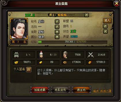 2. 点击左上角的玩家头像即可进入君主系统面板