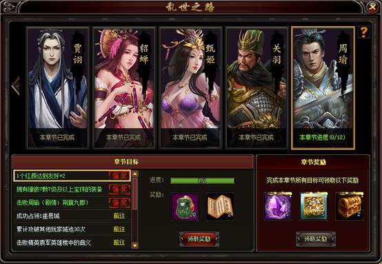 1. 乱世之路目前共九章,完成每项目标均可获得不同的奖励。