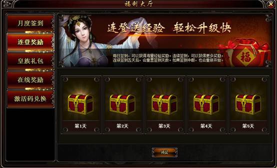 1) 每日签到,均可获得丰厚的经验奖励,连续签到可获得更多奖励