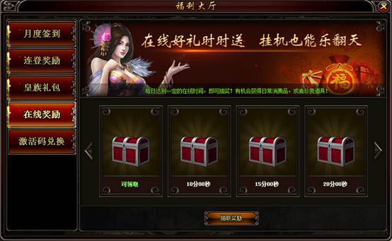 1) 每日达到一定的在线时间,即可参与抽奖。